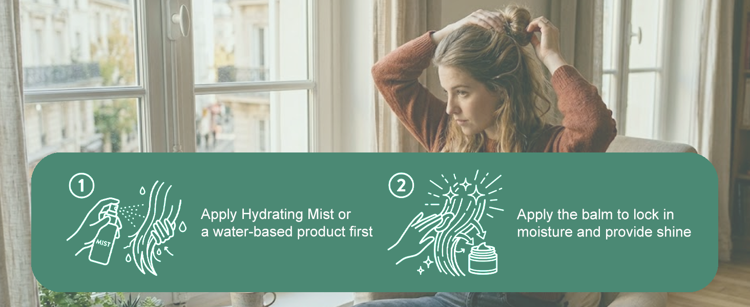 Directions: Apply Hydrating Mist or a water-based product first, then apply the balm to lock in moisture and provide shine.